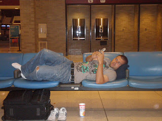 Coming home from New York we encountered bad weather in Dallas. Right before our decent the pilot was told to go back to Memphis (where we had our layover) cuz they wouldn't let us land in Dallas and we couldn't cirlce around forever. So we went back to Memphis and sat on the plane for over an hour waiting for another crew to come and fly us, yet again, back to Dallas. Well, they couldn't get another crew so our flight was canceled and we got to hang out in the NOT SO COMFORTABLE airport overnight (no free hotels when the cancelation is weather related!) YEAH IT SUCKED!